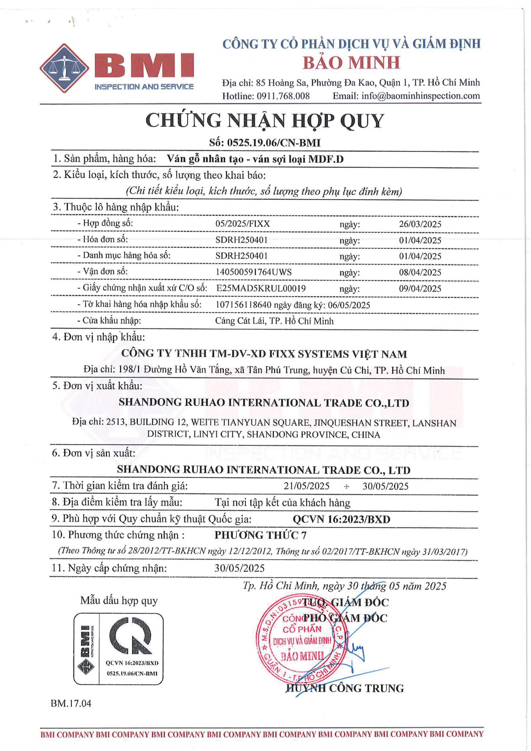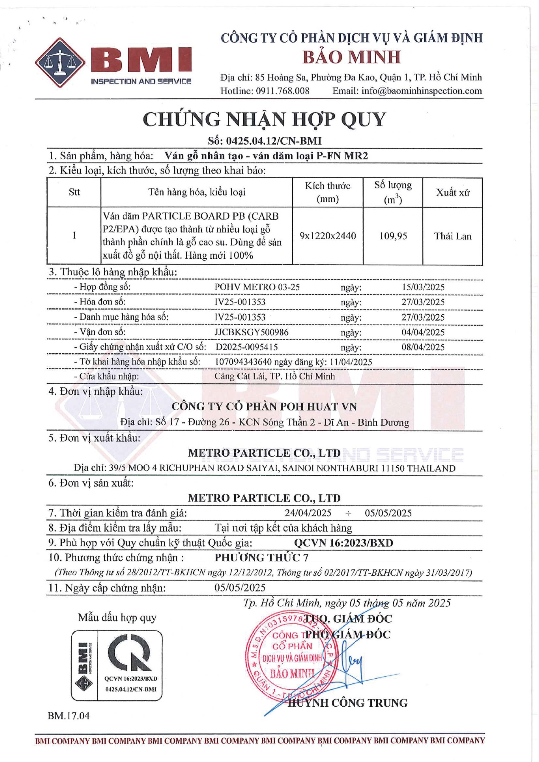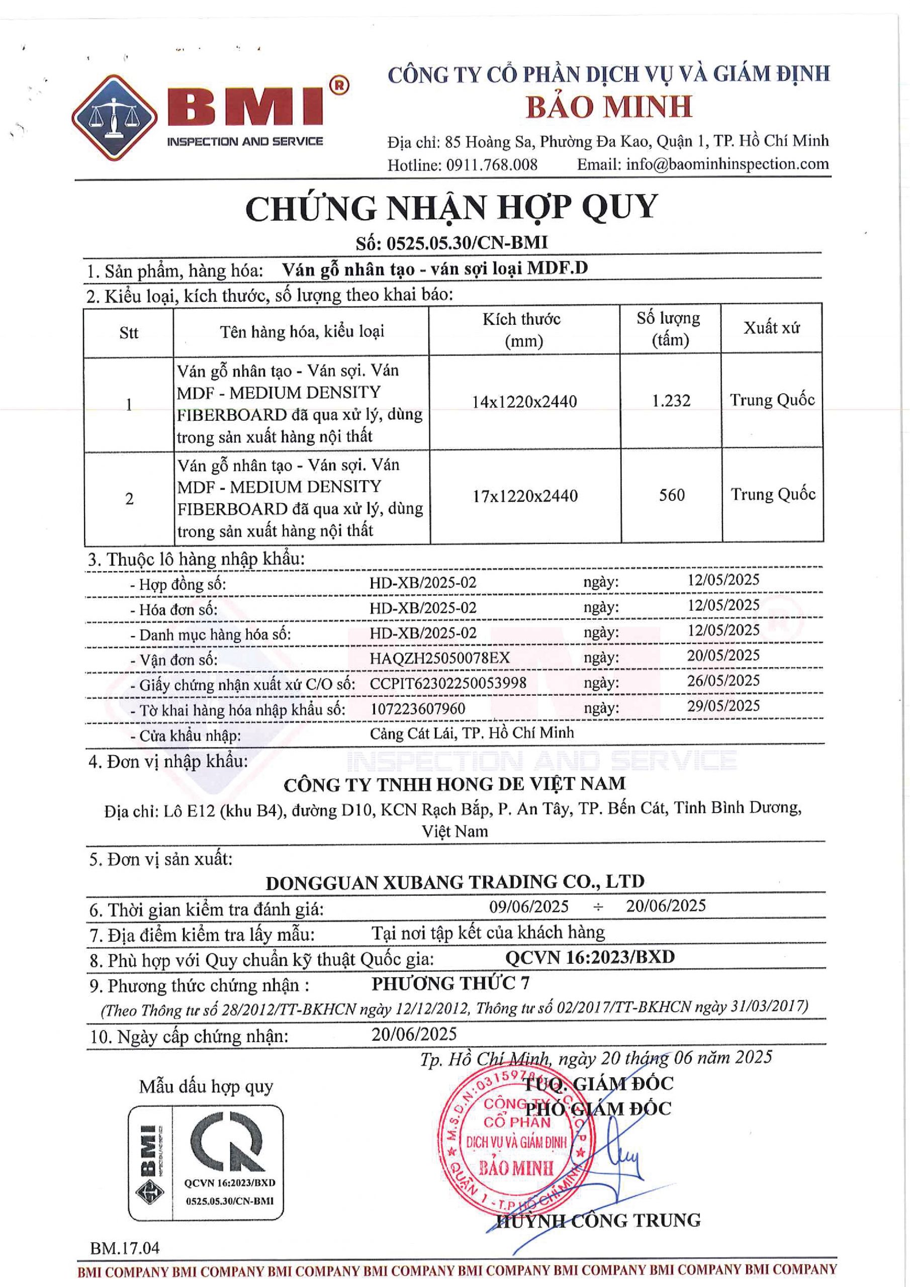 BMI COMPANY chỉ chấp nhận chứng nhận sản phẩm phù hợp quy chuẩn khi và chỉ khi tất cả các chỉ tiêu thử nghiệm có kết quả phù hợp với các yêu cầu trong quy chuẩn kỹ thuật.