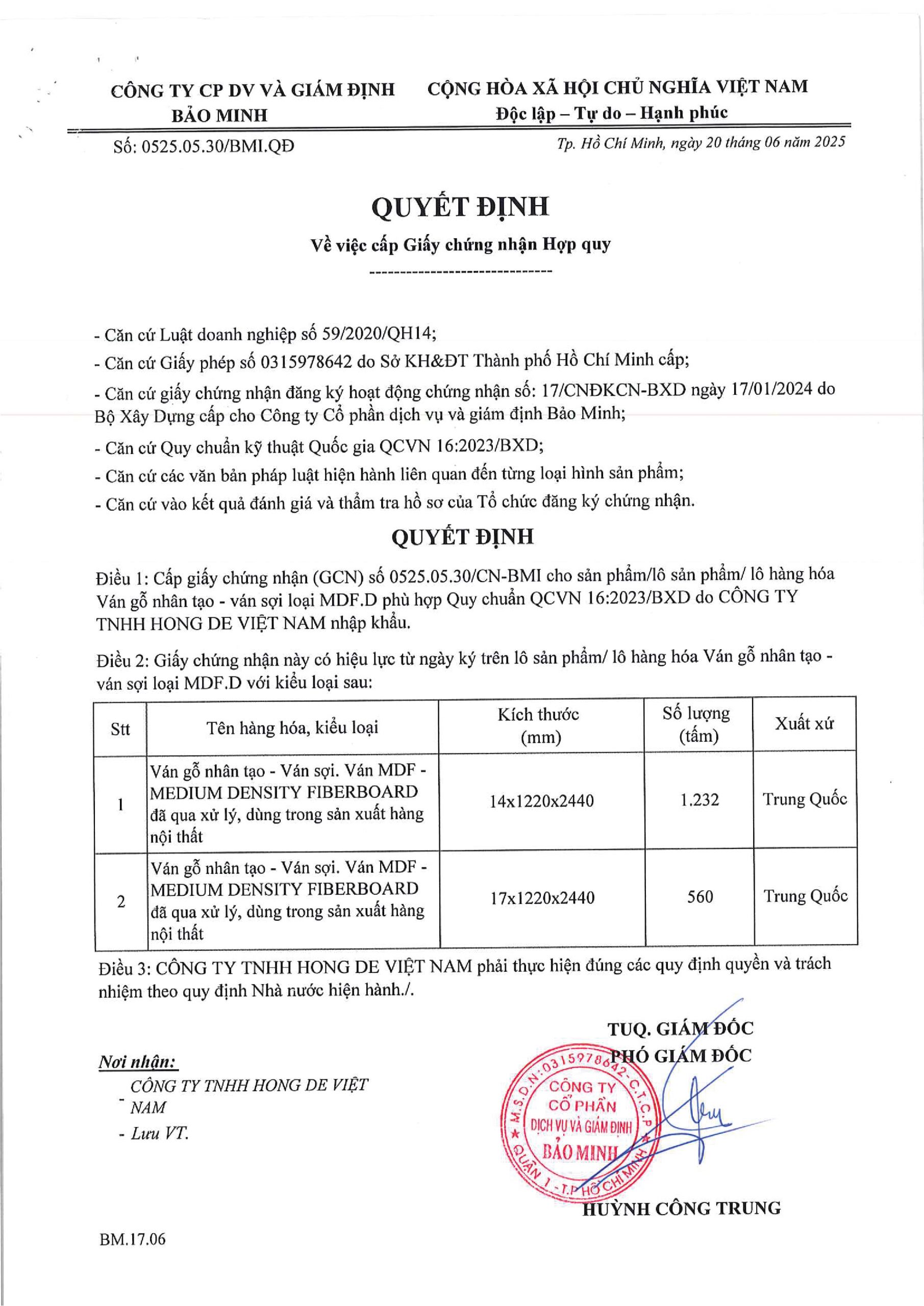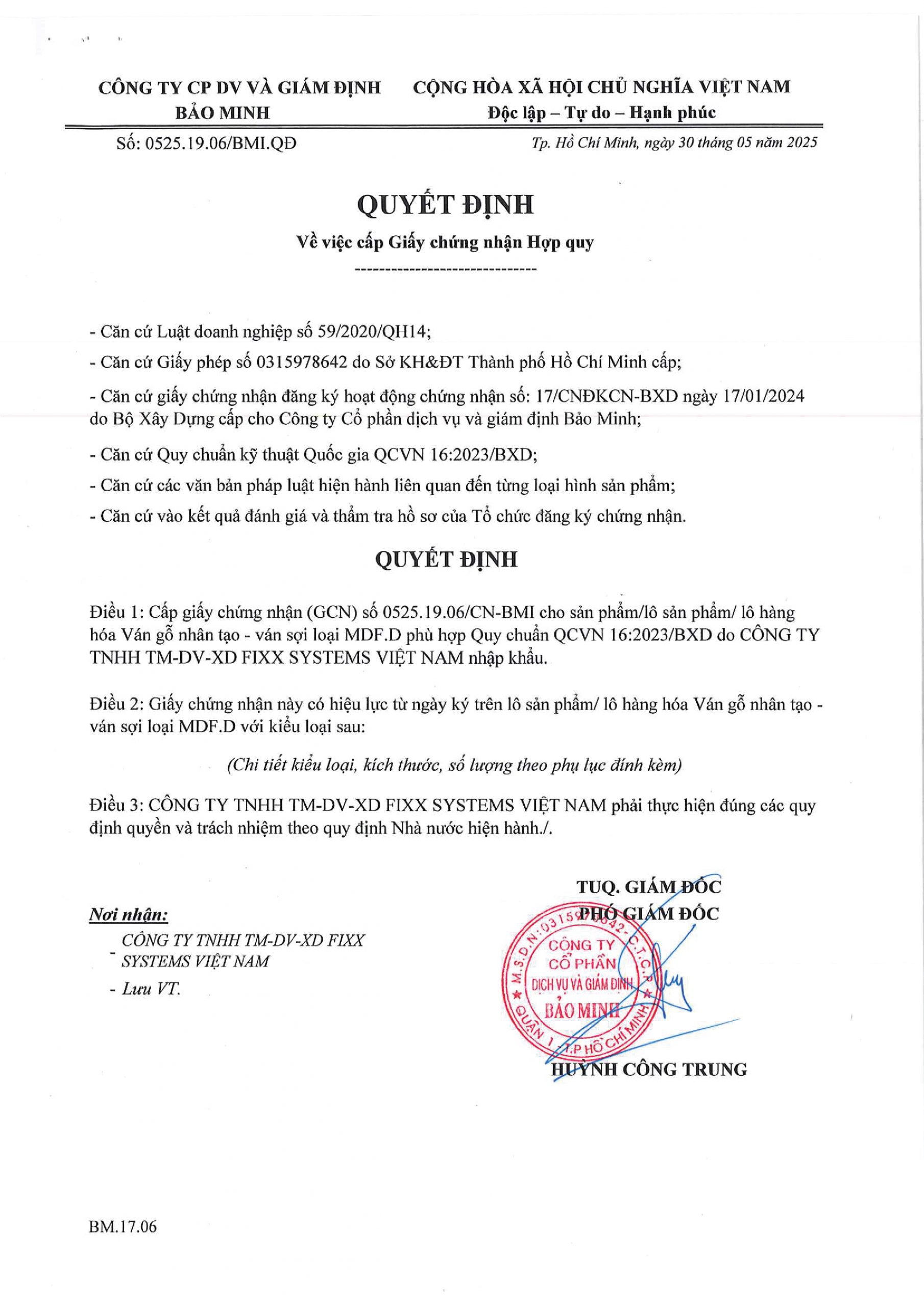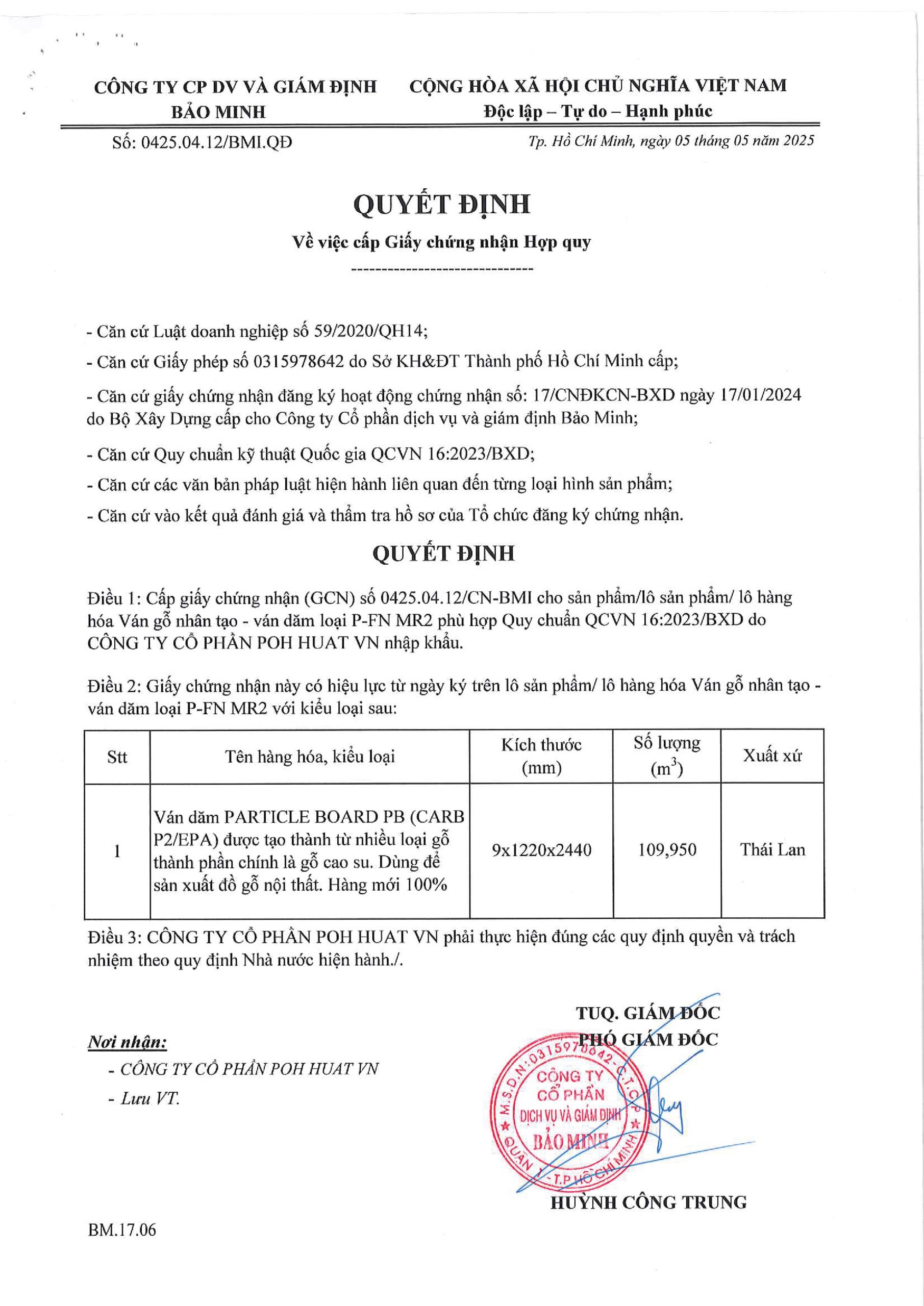 BMI COMPANY chỉ chấp nhận chứng nhận sản phẩm phù hợp quy chuẩn khi và chỉ khi tất cả các chỉ tiêu thử nghiệm có kết quả phù hợp với các yêu cầu trong quy chuẩn kỹ thuật.