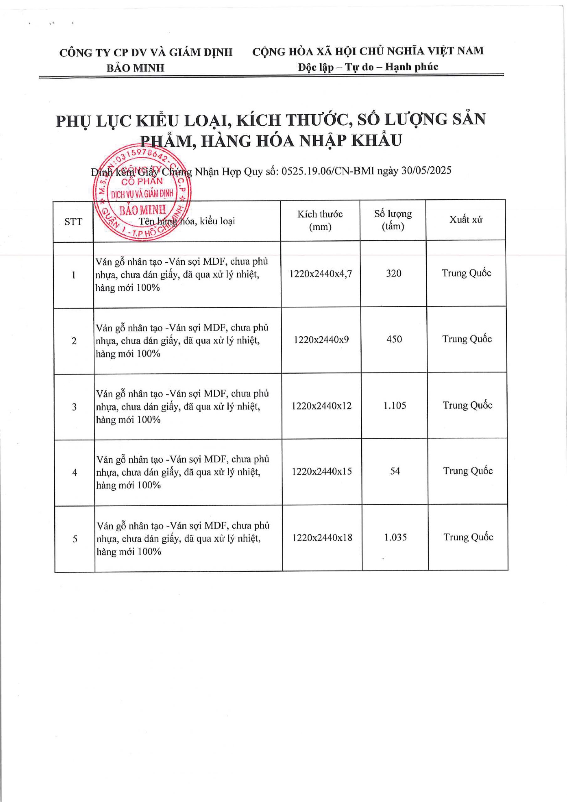 Các chứng nhận hợp quy Bảo Minh đã phát hành
