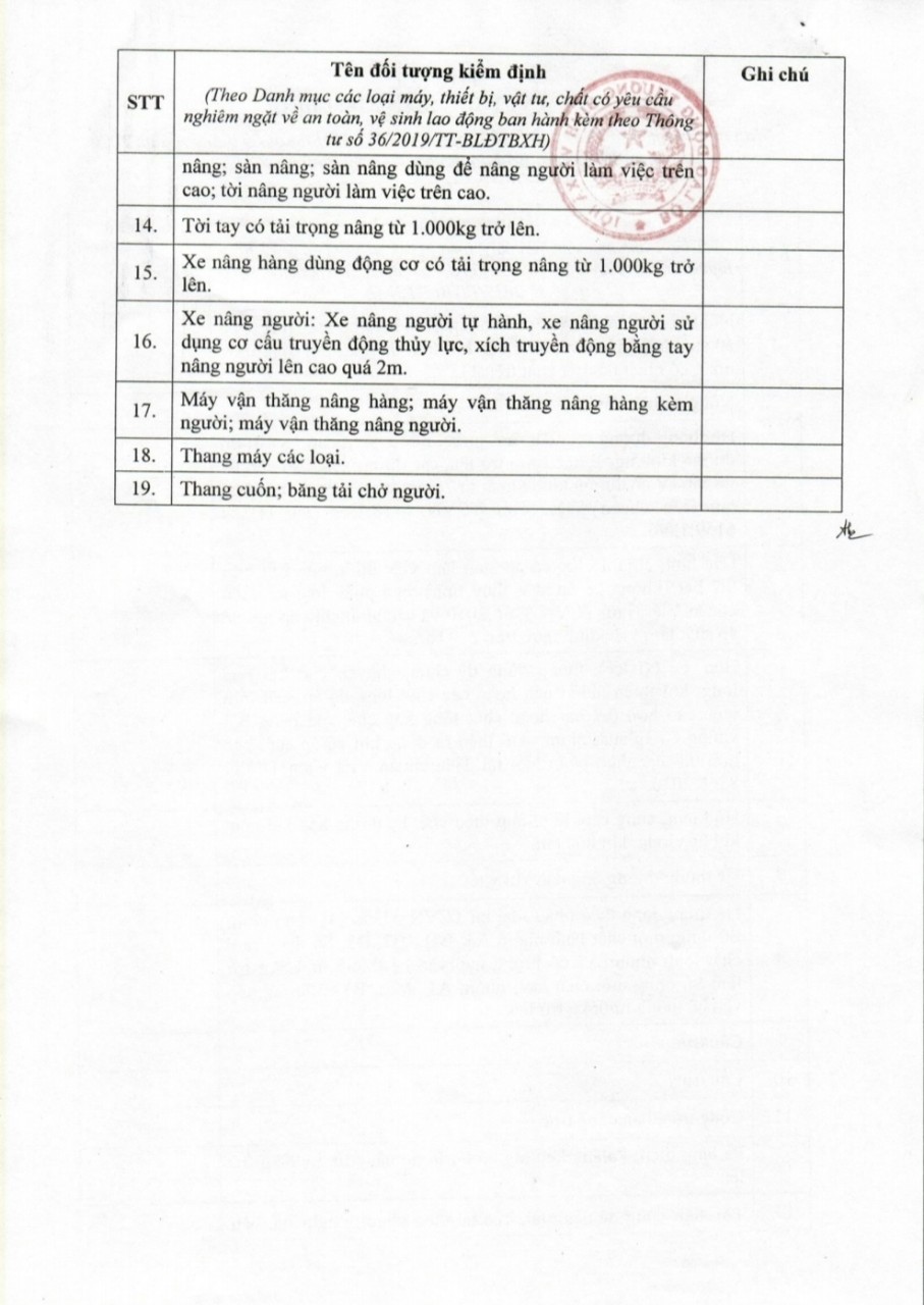 Danh mục các thiết bị có yêu cầu nghiêm ngặt BMI COMPANY được Bộ Lao động – Thương binh và Xã hội cấp phép thực hiện (xem thêm năng lực )